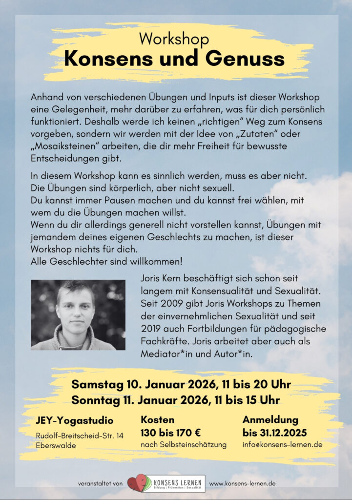 Workshop mit Joris Kern: „Konsens und Genuss“